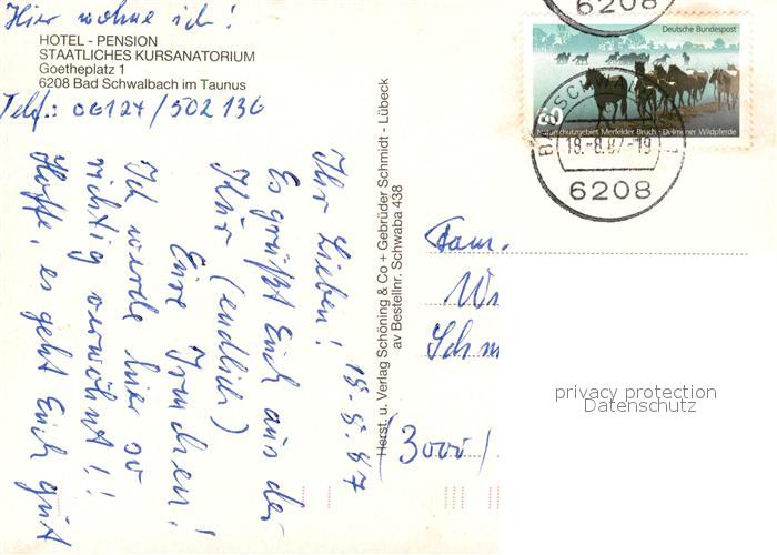 73174631 alte Postkarte Bad Schwalbach Hotel-Pension Staatliches Kursanatorium postalisch gelaufen Erhaltung siehe scans [PaolaD17] KatCode: 11110006439002