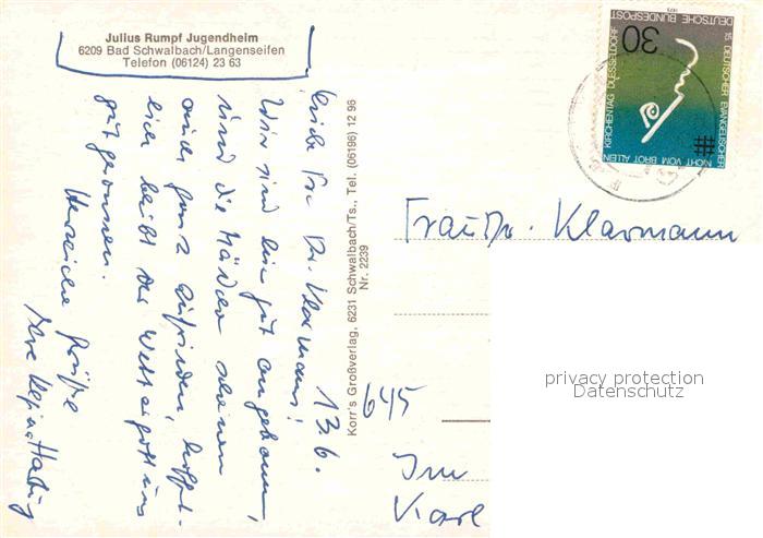 72777827 alte Postkarte Bad Schwalbach Julius Rumpf Jugendheim postalisch gelaufen Erhaltung siehe scans [LiesaD40] KatCode: 11110006439002