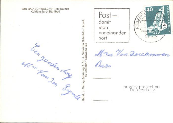72614684 alte Postkarte Bad Schwalbach Kohlensaeure Stahlbad postalisch gelaufen Erhaltung siehe scans [WerneD78] KatCode: 11110006439002