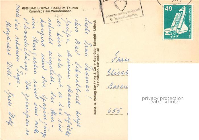 73088400 alte Postkarte Bad Schwalbach Kuranlage am Weinbrunnen postalisch gelaufen Erhaltung siehe scans [PaolaD17] KatCode: 11110006439002