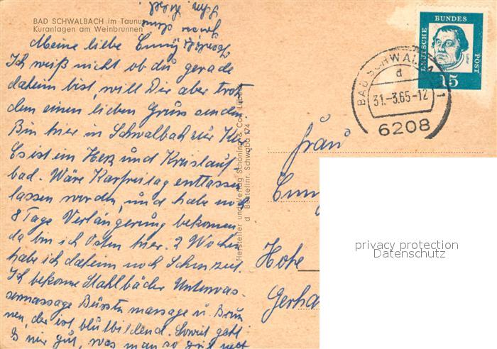 73072031 alte Postkarte Bad Schwalbach Kuranlagen Weinbrunnen postalisch gelaufen Erhaltung siehe scans [NatalD47] KatCode: 11110006439002