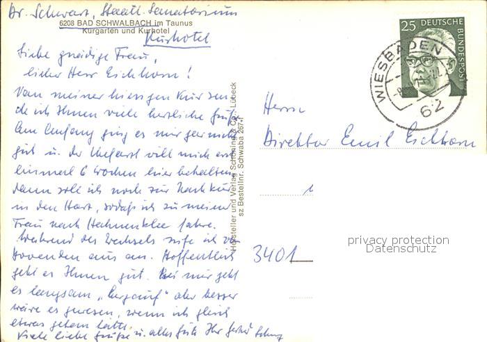 71991860 alte Postkarte Bad Schwalbach Kurgarten Kurhotel postalisch gelaufen Erhaltung siehe scans KatCode: 11110006439002