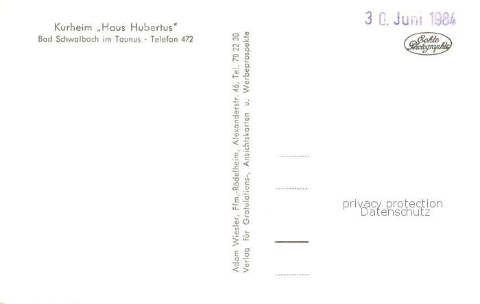 73762689 Bad Schwalbach Kurheim Haus Hubertus postalisch nicht gelaufen Erhaltung siehe scans [FriedD77] KatCode: 11110006439002