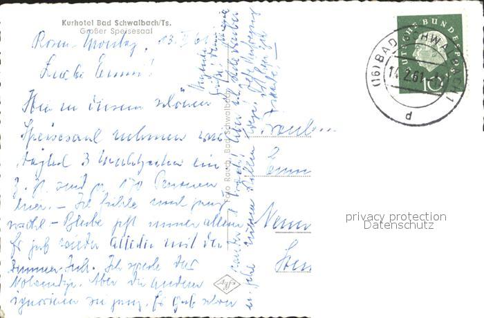 72096333 alte Postkarte Bad Schwalbach Kurhotel Grosser Speisesaal postalisch gelaufen Erhaltung siehe scans KatCode: 11110006439002
