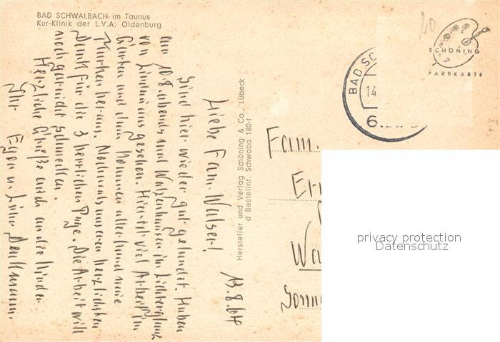72960786 alte Postkarte Bad Schwalbach Kurklinik der L.V.A Oldenburg postalisch gelaufen Erhaltung siehe scans [LiesaD40] KatCode: 11110006439002