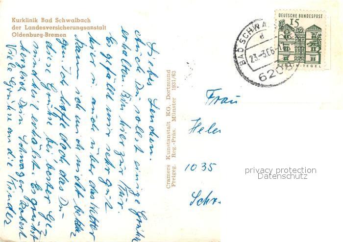 73160653 alte Postkarte Bad Schwalbach Kurklinik der LVA Oldenburg Bremen Fliegeraufnahme postalisch gelaufen Erhaltung siehe scans [FriedD77] KatCode: 11110006439002