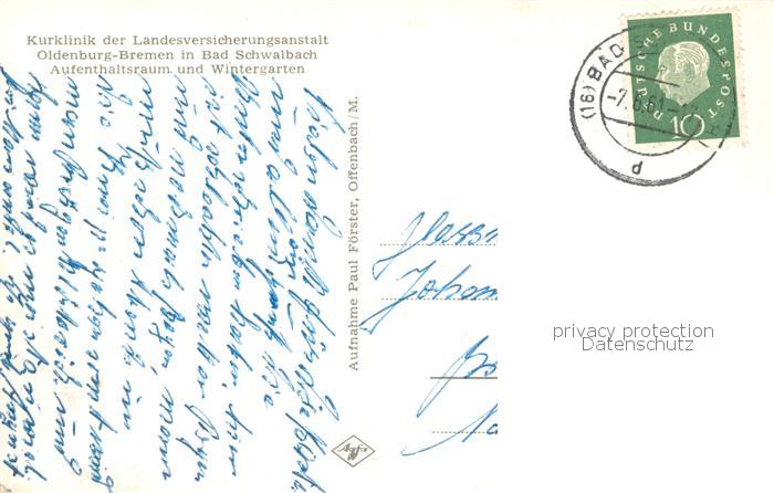 73763691 alte Postkarte Bad Schwalbach Kurklinik der LVA Oldenburg Bremen postalisch gelaufen Erhaltung siehe scans [WerneD78] KatCode: 11110006439002