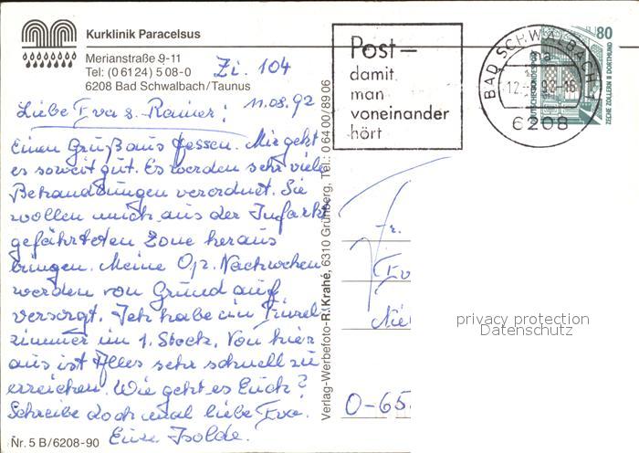 72411441 alte Postkarte Bad Schwalbach Kurklinik Paracelsus Empfangshalle Speisesaal Schwimmbad postalisch gelaufen Erhaltung siehe scans KatCode: 11110006439002