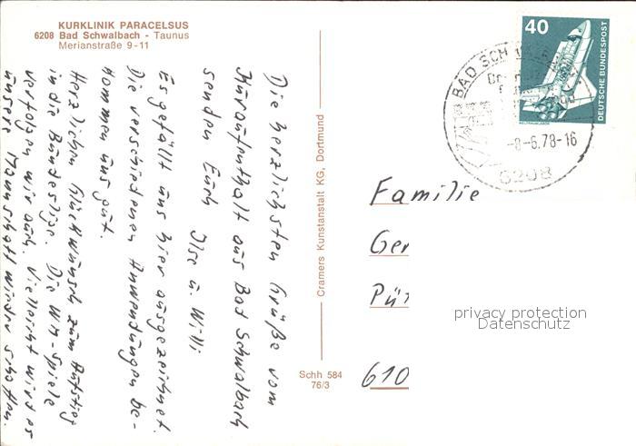 alte Postkarte Bad Schwalbach Kurklinik Paracelsus Hallenbad Restaurant postalisch gelaufen Erhaltung siehe scans