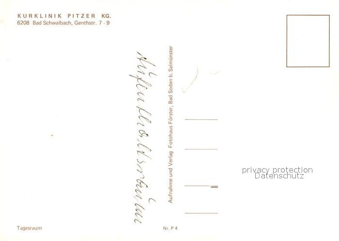 73204236 Bad Schwalbach Kurklinik Pitzer postalisch nicht gelaufen Erhaltung siehe scans [NatalD47] KatCode: 11110006439002