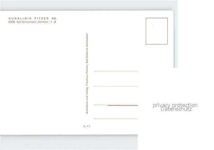 72300618 Bad Schwalbach Kurklinik Pitzer postalisch nicht gelaufen Erhaltung siehe scans KatCode: 11110006439002