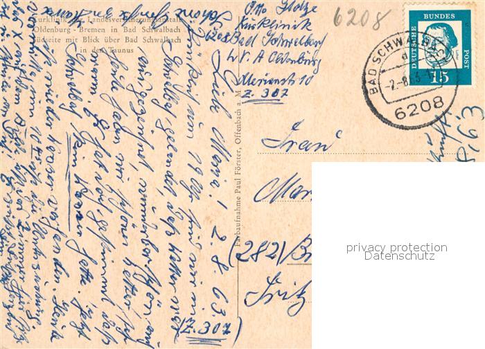 72950539 alte Postkarte Bad Schwalbach Kurklinik postalisch gelaufen Erhaltung siehe scans [NatalD47] KatCode: 11110006439002