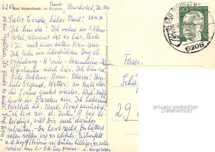 73021610 alte Postkarte Bad Schwalbach Kurpark postalisch gelaufen Erhaltung siehe scans [WerneD78] KatCode: 11110006439002