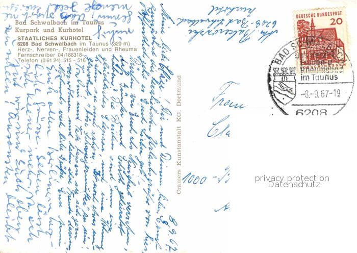 72748754 alte Postkarte Bad Schwalbach Kurpark und Kurhotel postalisch gelaufen Erhaltung siehe scans [FriedD77] KatCode: 11110006439002