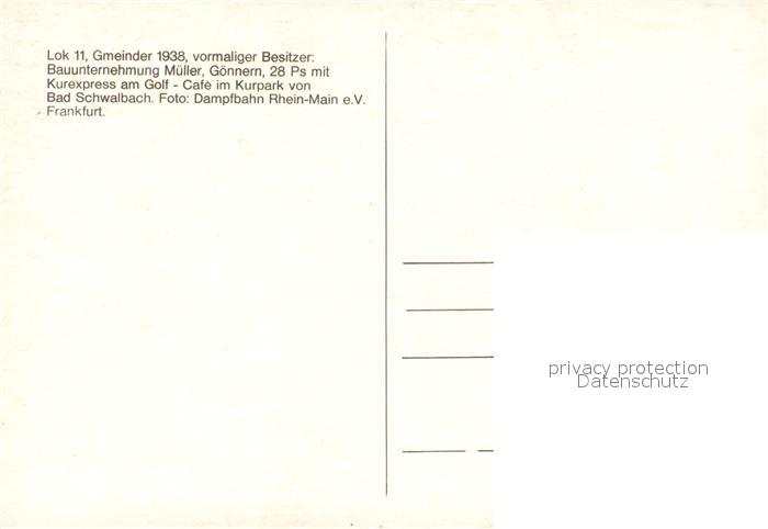 73246469 Bad Schwalbach Lok 11 Gmeinder 1938 Kurexpress am Golfcafe im Kurpark postalisch nicht gelaufen Erhaltung siehe scans [FriedD77] KatCode: 11110006439002