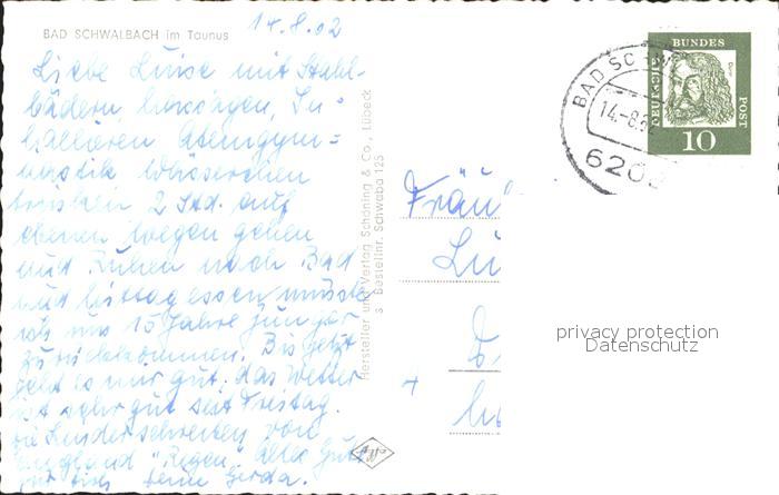72078987 alte Postkarte Bad Schwalbach Ortsansicht mit Kirche postalisch gelaufen Erhaltung siehe scans KatCode: 11110006439002