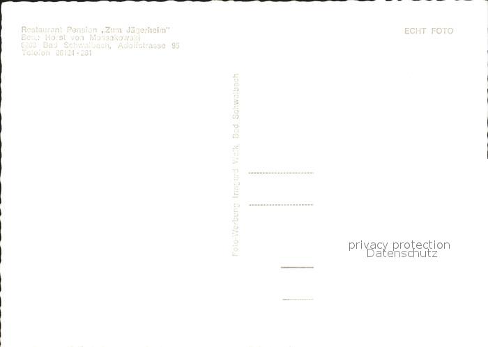 72095897 Bad Schwalbach Restaurant Pension zum Jaegerheim postalisch nicht gelaufen KatCode: 11110006439002