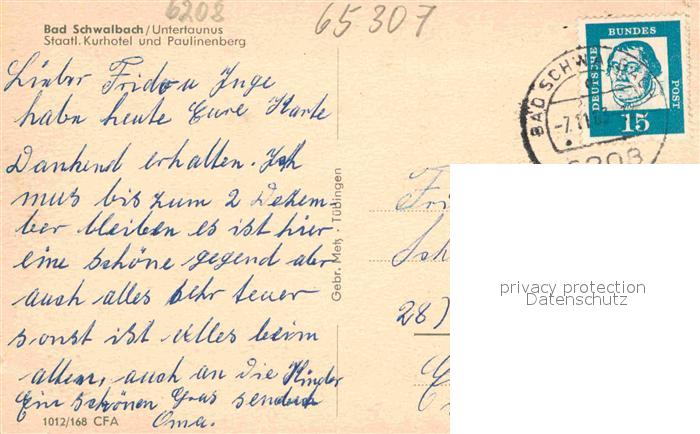 72863826 alte Postkarte Bad Schwalbach Staatl Kurhotel und Paulinenberg postalisch gelaufen Erhaltung siehe scans [WerneD78] KatCode: 11110006439002