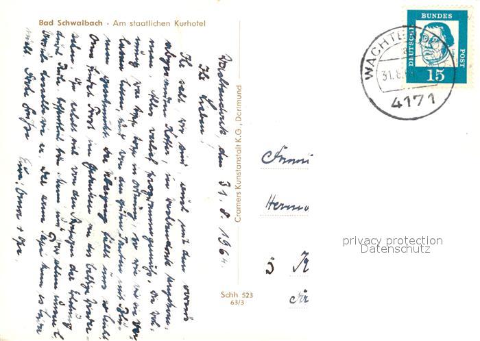 73109298 alte Postkarte Bad Schwalbach Staatliches Kurhotel postalisch gelaufen Erhaltung siehe scans [KathaD81] KatCode: 11110006439002