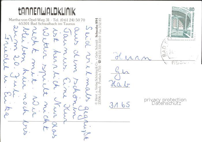 alte Postkarte Bad Schwalbach Tannenwaldklinik postalisch gelaufen Erhaltung siehe scans