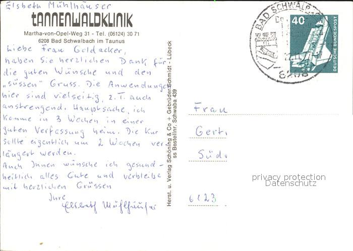 alte Postkarte Bad Schwalbach Tannenwaldklinik postalisch gelaufen Erhaltung siehe scans