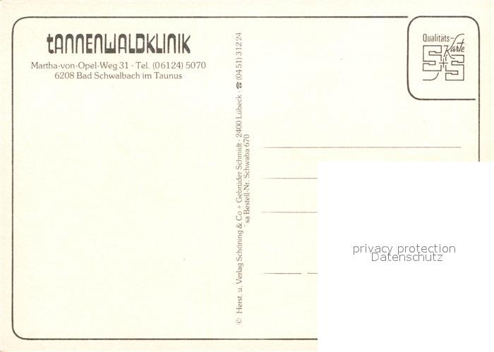 72946917 Bad Schwalbach Tannenwaldklinik postalisch nicht gelaufen Erhaltung siehe scans [KathaD81] KatCode: 11110006439002