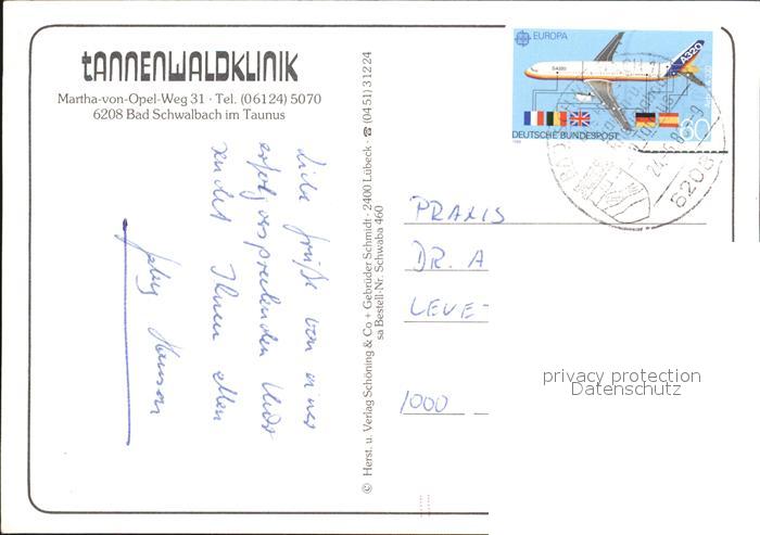 72609761 alte Postkarte Bad Schwalbach Tannenwaldklinik postalisch gelaufen Erhaltung siehe scans [LiesaD40] KatCode: 11110006439002