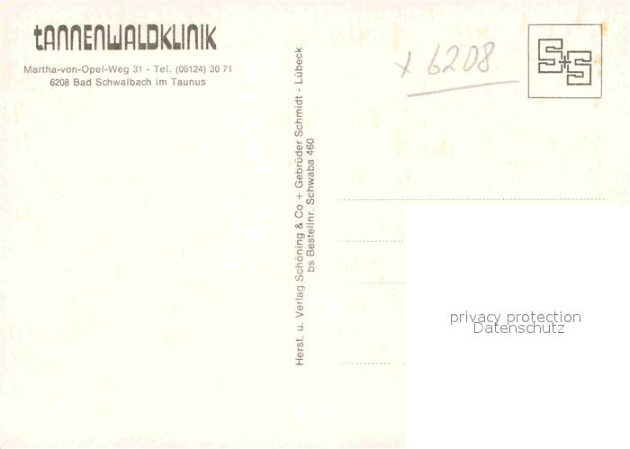 72654586 Bad Schwalbach Tannenwaldklinik Bewegungsbad postalisch nicht gelaufen Erhaltung siehe scans [FriedD77] KatCode: 11110006439002