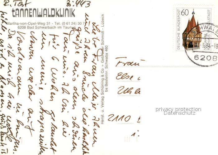 73121220 alte Postkarte Bad Schwalbach Tannenwaldklinik Schwimmbad postalisch gelaufen Erhaltung siehe scans [LiesaD40] KatCode: 11110006439002