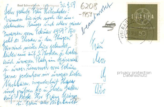 73697004 alte Postkarte Bad Schwalbach Untertaunus Haus Hubertus postalisch gelaufen Erhaltung siehe scans [LiesaD40] KatCode: 11110006439002