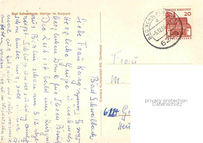 72793227 alte Postkarte Bad Schwalbach Weiher im Kurpark Schwaene postalisch gelaufen Erhaltung siehe scans [LiesaD40] KatCode: 11110006439002