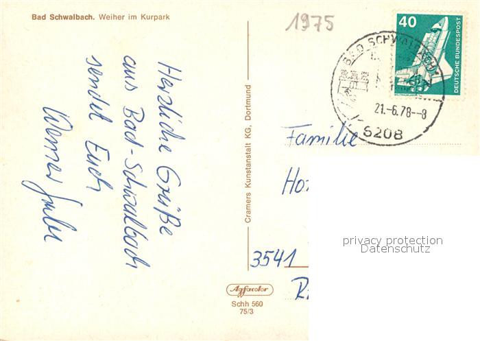 73067110 alte Postkarte Bad Schwalbach Weiher Kurpark postalisch gelaufen Erhaltung siehe scans [NatalD47] KatCode: 11110006439002
