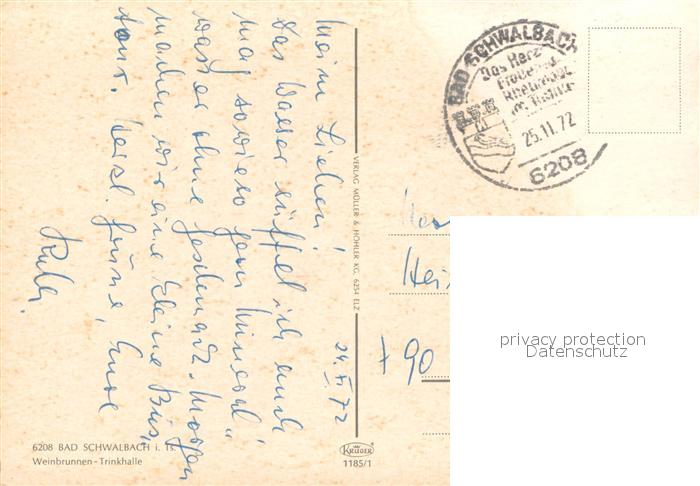 73678892 alte Postkarte Bad Schwalbach Weinbrunnen Trinkhalle postalisch gelaufen Erhaltung siehe scans [FriedD77] KatCode: 11110006439002