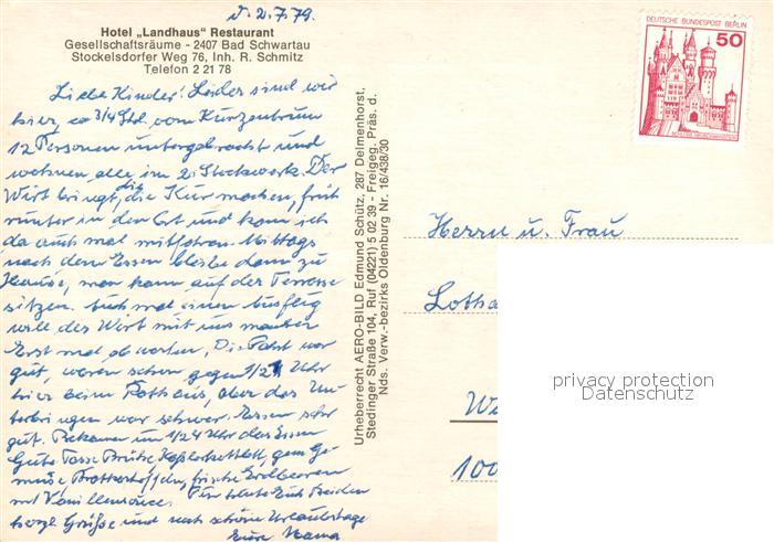 73730345 alte Postkarte Bad Schwartau Hotel Landhaus Restaurant Fliegeraufnahme postalisch gelaufen Erhaltung siehe scans [WerneD78] KatCode: 11110001055004