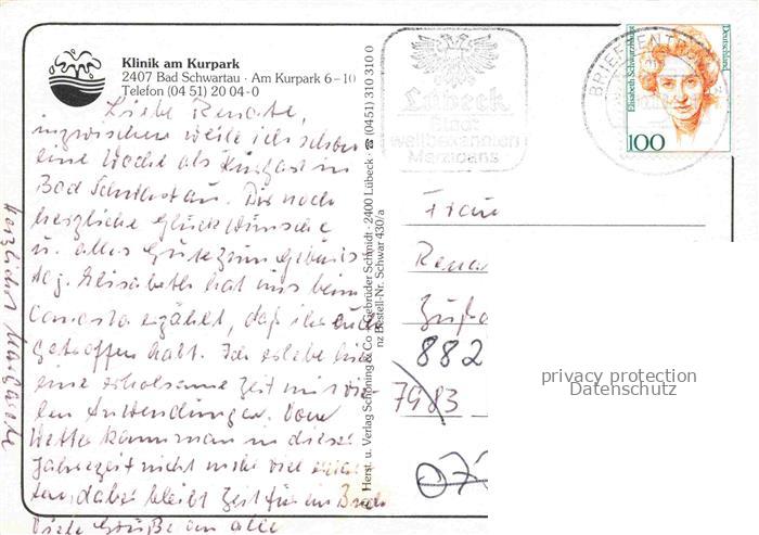 74043528 alte Postkarte Bad Schwartau Klinik am Kurpark postalisch gelaufen Erhaltung siehe scans [FriedD77] KatCode: 11110001055004