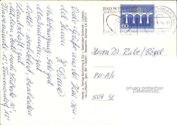 71946758 alte Postkarte Bad Schwartau Kurmittelzentrum Fliegeraufnahme postalisch gelaufen Erhaltung siehe scans KatCode: 11110001055004