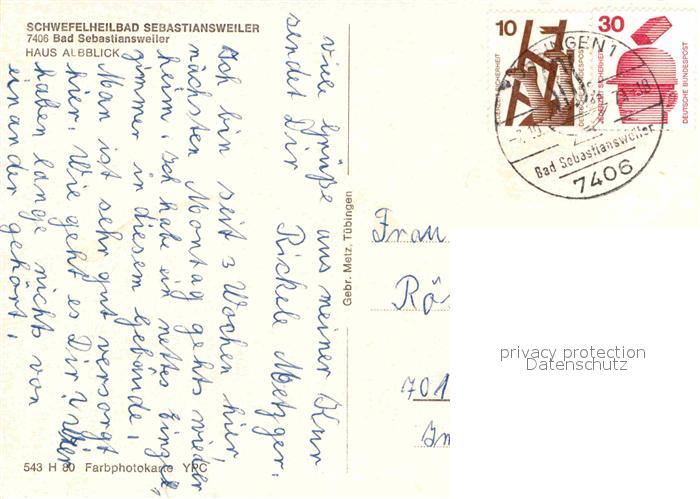 72846013 alte Postkarte Bad Sebastiansweiler Haus Albblick postalisch gelaufen Erhaltung siehe scans [LiesaD40] KatCode: 11110008416025