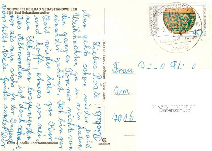 72846014 alte Postkarte Bad Sebastiansweiler Haus Albblick und Sonnenschein postalisch gelaufen Erhaltung siehe scans [LiesaD40] KatCode: 11110008416025