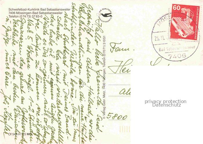 74023625 alte Postkarte Bad Sebastiansweiler Schwefelbad-Kurklinik postalisch gelaufen Fliegeraufnahme Erhaltung siehe scans [FriedD77] KatCode: 11110008416025