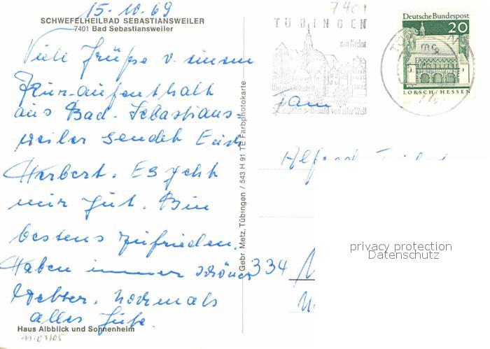 72910103 alte Postkarte Bad Sebastiansweiler Schwefelheilbad postalisch gelaufen Erhaltung siehe scans [LiesaD40] KatCode: 11110008416025