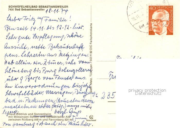 73655225 alte Postkarte Bad Sebastiansweiler Schwefelheilbad Sebastiansweiler postalisch gelaufen Erhaltung siehe scans [WerneD78] KatCode: 11110008416025