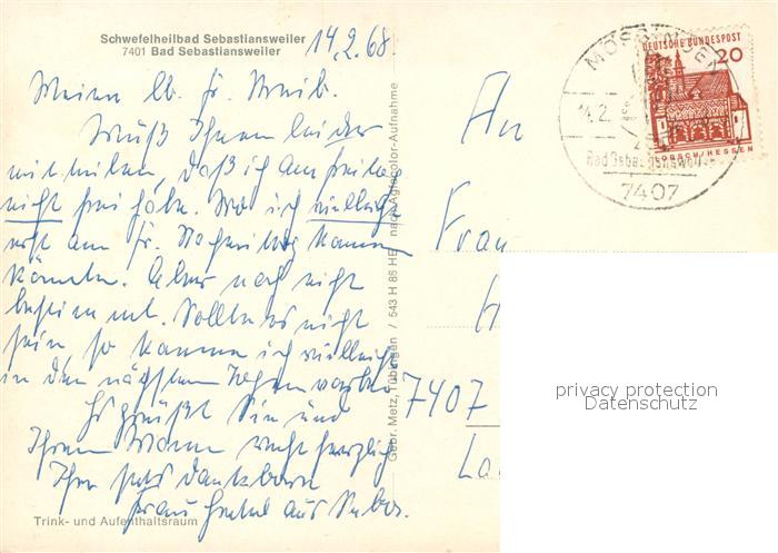 73089007 alte Postkarte Bad Sebastiansweiler Schwefelheilbad Trink- und Aufenthaltsraum postalisch gelaufen Erhaltung siehe scans [PaolaD17] KatCode: 11110008416025