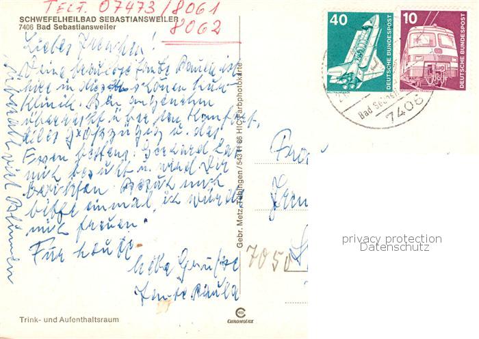 73835699 alte Postkarte Bad Sebastiansweiler Schwefelheilbad Trink und Aufenthaltsraum postalisch gelaufen Erhaltung siehe scans [WerneD78] KatCode: 11110008416025