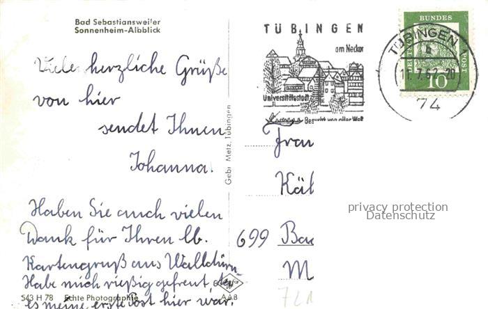 74023161 alte Postkarte Bad Sebastiansweiler Sonnenheim Albblick postalisch gelaufen Erhaltung siehe scans [WerneD78] KatCode: 11110008416025