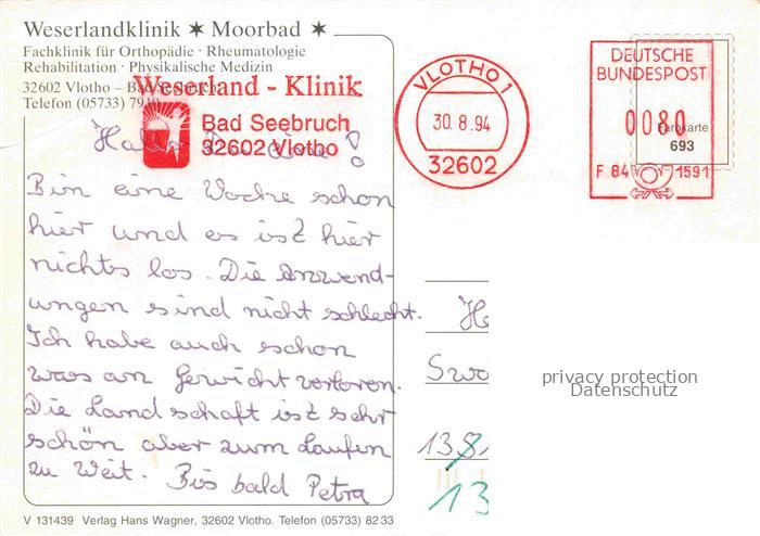 74027624 alte Postkarte Bad Seebruch Vlotho Weserlandklinik Caféterrasse Lichterfest Kurpark Speisesaal Kraeutergaren Café postalisch gelaufen Erhaltung siehe scans [FriedD77] KatCode: 11110005758036