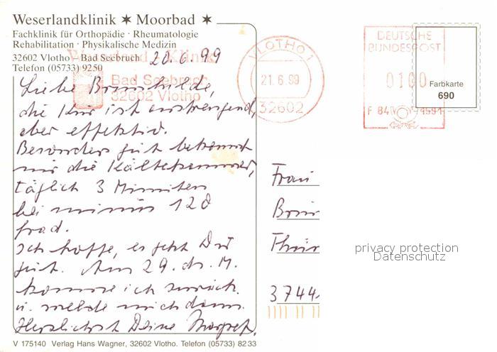 72797705 alte Postkarte Bad Seebruch Weserlandklinik postalisch gelaufen Erhaltung siehe scans [FriedD77] KatCode: 11110005758036