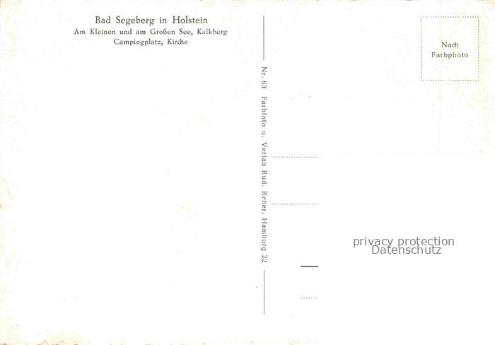 74028133 Bad Segeberg Am kleinen und grossen See Kalkberg Campingplatz Kirche postalisch nicht gelaufen Erhaltung siehe scans [FriedD77] KatCode: 11110001060005