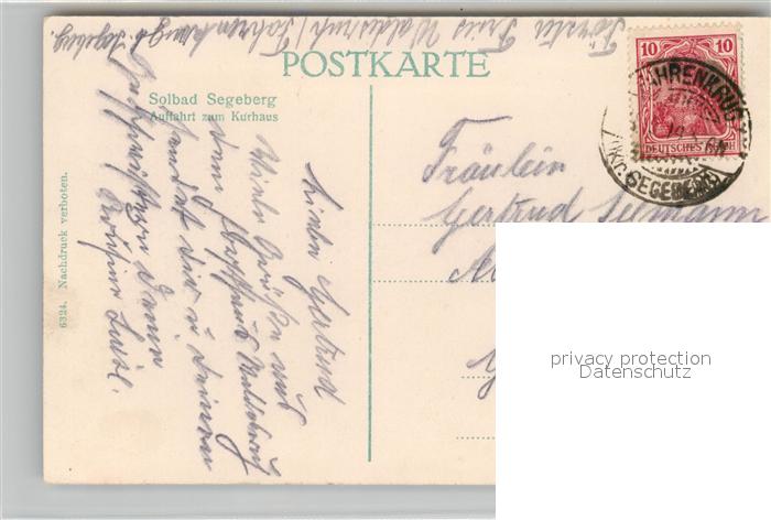 43497080 alte Postkarte Bad Segeberg Auffahrt zum Kurhaus postalisch gelaufen Erhaltung siehe scans [LiesaD40] KatCode: 11110001060005