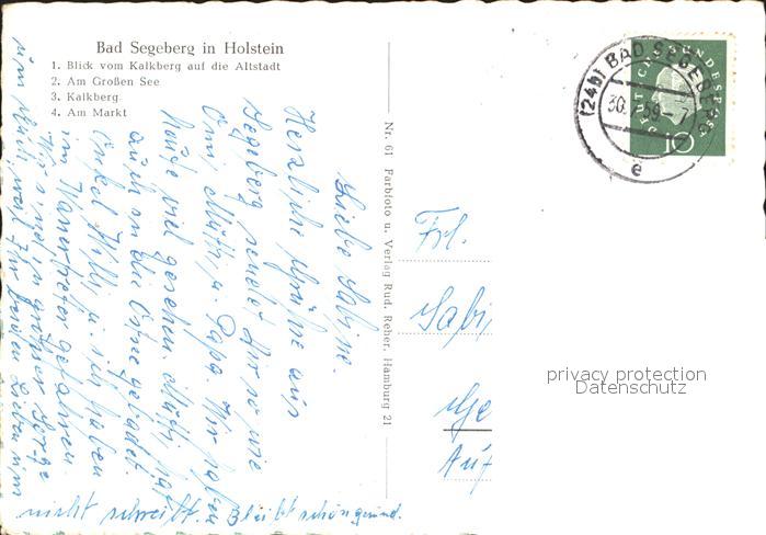 72129953 alte Postkarte Bad Segeberg Blick vom Kalkberg Grosser See Markt postalisch gelaufen Erhaltung siehe scans KatCode: 11110001060005