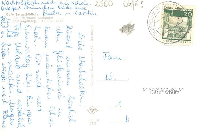 73690561 alte Postkarte Bad Segeberg Cafe Bbergschloesschen postalisch gelaufen Erhaltung siehe scans [WerneD78] KatCode: 11110001060005